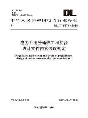 为统一规范电力系统光通信工程初步设计文件的内容及深度,制定《中华人民共和国电力行业标准(DL/T 5571-2020):电力系统光通信工程初步设计文件内容深度规定》。 《中华人民共和国电力行业标准(DL/T 5571-2020):电力系统光通信工程初步设计文件内容深度规定》适用于电力系统调度机构、各级办公大楼、35kV及以上电压等级的新建、扩建、改建光通信工程。其初步设计文件的内容及深度的要求应符合《中华人民共和国电力行业标准(DL/T 5571-2020):电力系统光通信工程初步设计文件内容深度规定》。 初步设计文件的编制应遵守国家及相关部门颁发的有效设计文件编制和审批办法的规定。 初步设计文件应贯彻国家的基本建设方针和有关技术经济政策,符合国家和电力行业的有关标准、规范、规程和规定,宜采用标准化和通用化设计。 初步设计文件应详细说明设计中等